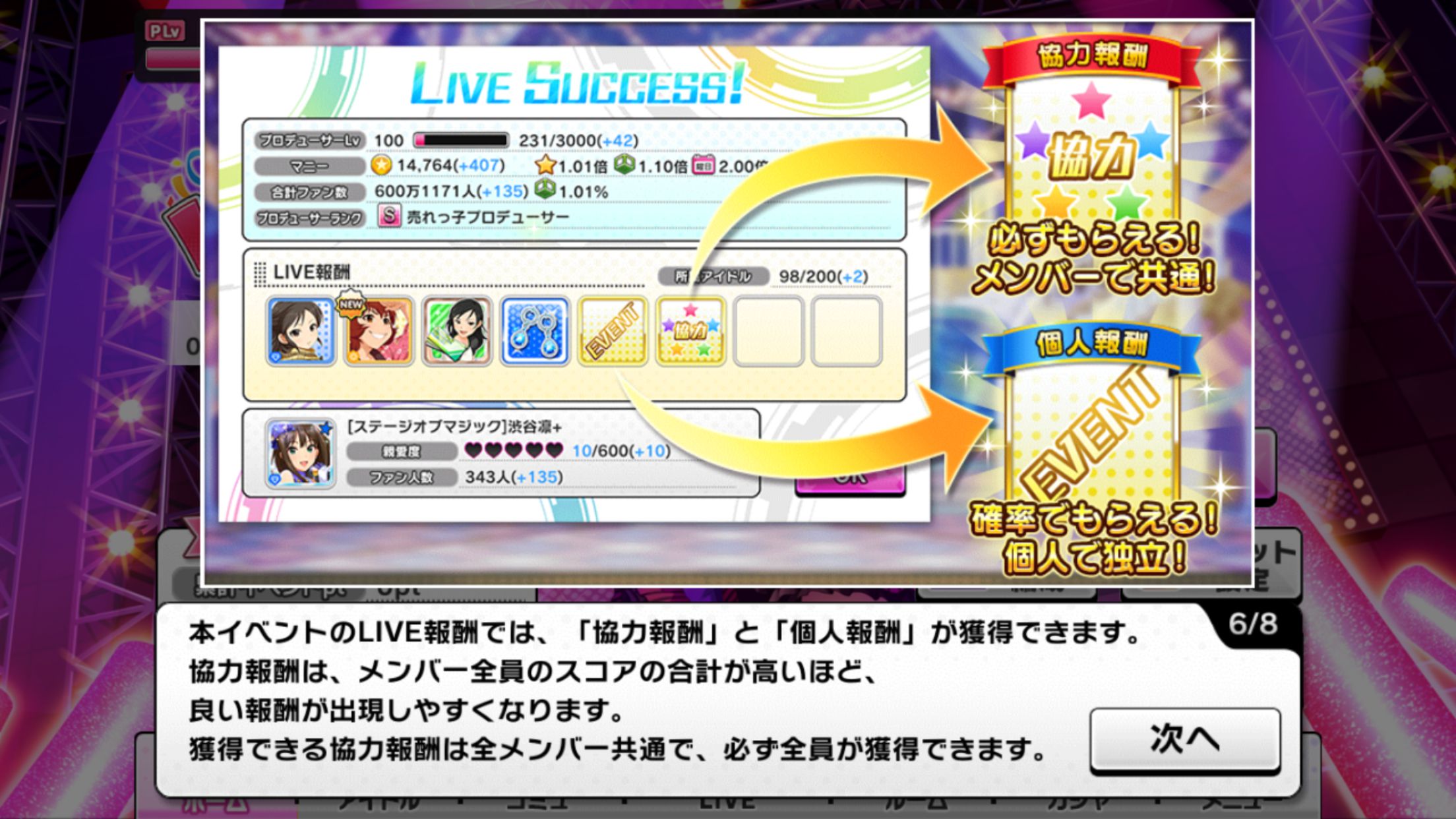 自分のスコアと自分のアイドルの特技発生回数