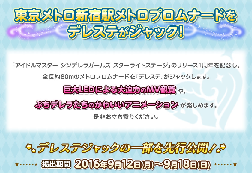 『東京メトロ新宿駅メトロプロムナードをデレステがジャックするお知らせ』を閲覧ありがとうございます。更新の励みになります。よろしければTweetをお願いします。
