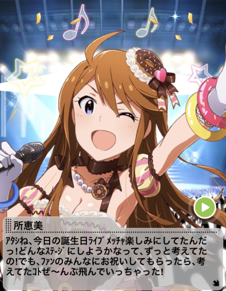 所恵美さんもおめでとう!中の人はゆきよちゃんか。アルパカの人。残念美人で好き。