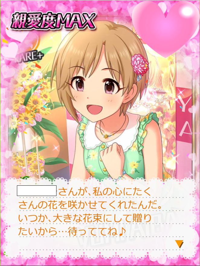 デレステでは藍子ちゃんと一緒に主力を担い、モバマスの方ではこないだSRが来てくれました