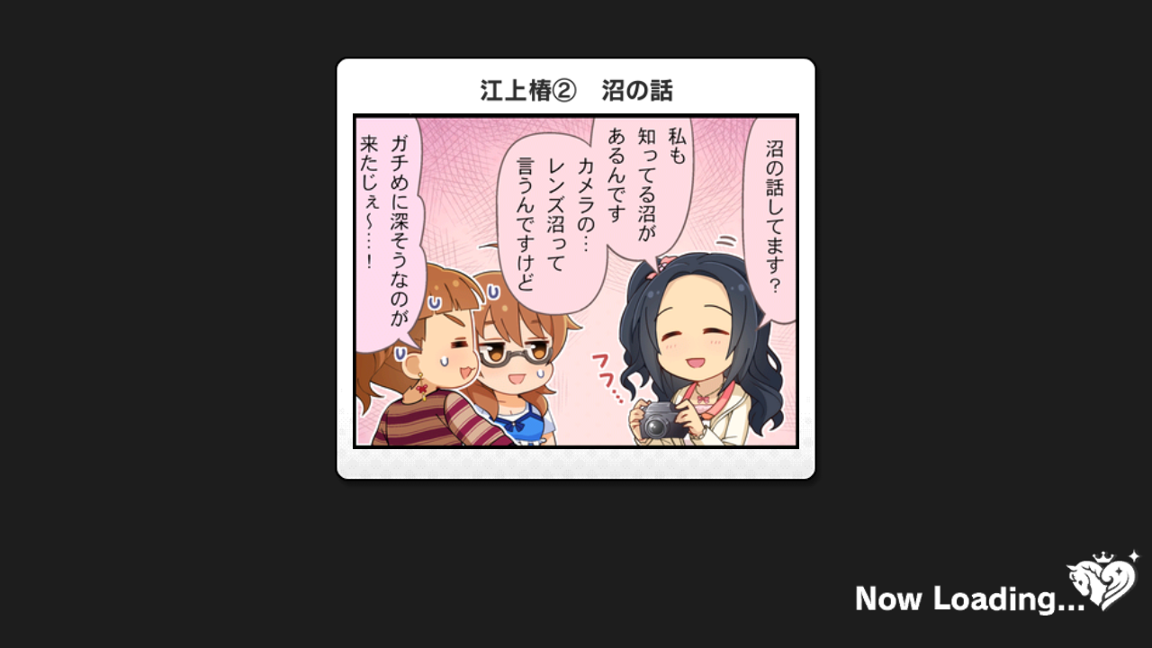 『『デレステ』一コマ劇場更新(江上椿・浅野風香・宮本フレデリカ・相原雪乃・遊佐こずえ・前川みく・二宮飛鳥・東郷あい・桐生つかさ・三船美優・黒川千秋・市原仁奈・北川真尋)』を閲覧ありがとうございます。更新の励みになります。よろしければTweetをお願いします。