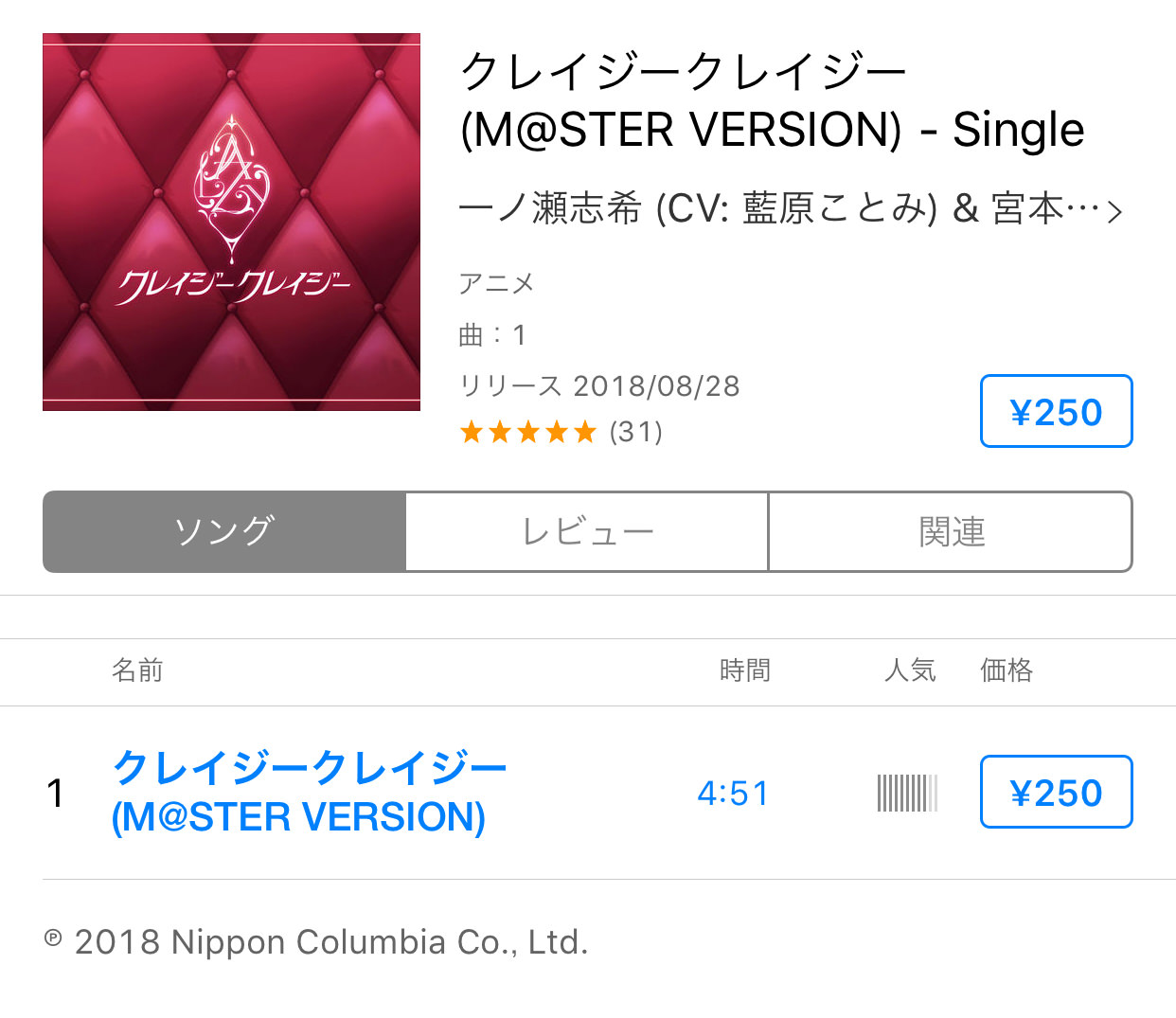 2018年08月28日付デジタルシングル(単曲)ランキング