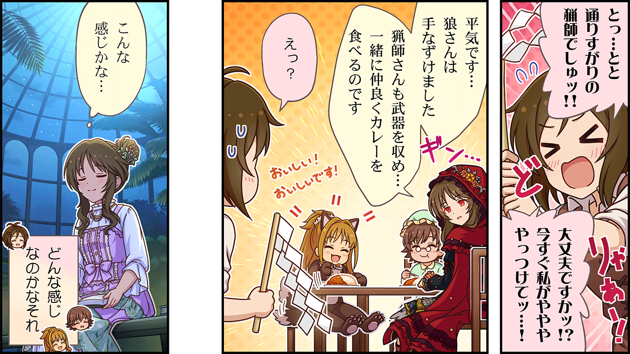 かわりに夕飯のカレーを一緒に食べさせる赤ずきん。ハイライトオフなのにほんわかシナリオ。劇場内で丁寧にツッコミが入ってるのでなにもいうことがない。