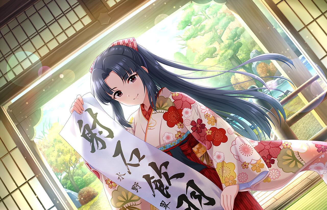 水野翠さん、スカートでもすっごいアクティブなことがわかった。これは妄想が捗る。男勝りとはちょっと違うけど、スカートにスニーカー?コンバース系のスニーカー?だし、松尾千鶴はちびっこの面倒見がいいし。すごい楽しそう。特訓後は自分のカード名の二つ名を習字。すごい達筆。さすが。着物も似合う。当然似合う。