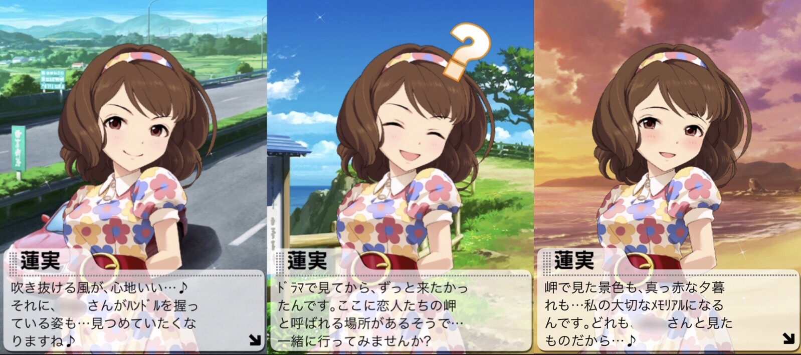 ハピバデート、これかなり距離が近いかも。ドライビング中の俺らを横からずっと見つめてくれるはすみん。恋人岬にも一緒に。最後は海。このまま帰ったのだろうか。こんなガン攻めゴン攻めのはすみんを相手に普通に帰ったのだろうか。