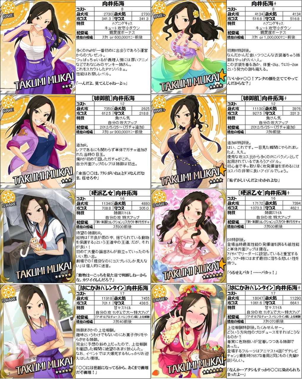 【モバマス】向井拓海、野々村そら、島村卯月、黒川千秋、佐久間まゆ、高垣楓、楊菲菲、若林智香のカタログ画像