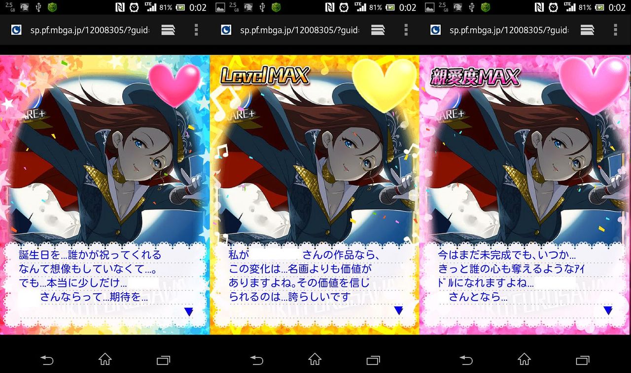 「いえ、私は…アイドルなんて柄では…。その…でも…アイドルって…華やかな世界なんでしょうね…。うん…楽しそうだな…って…。」古澤頼子の誕生日限定セリフ一覧のコメント一覧