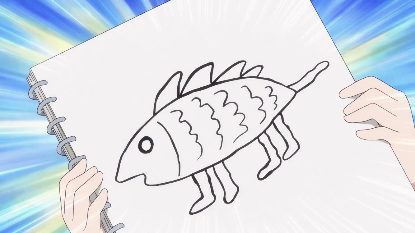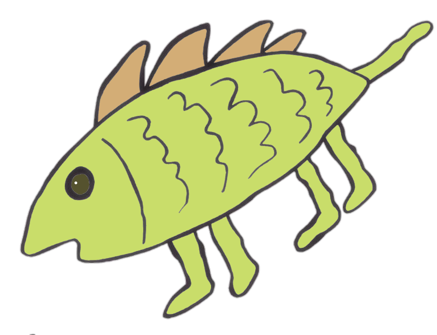 魚っぽい体に4つ足。だいたい合ってる。体にとってつけたかのようなしっぽがにょろにょろ伸びてるの最高に可愛い。
